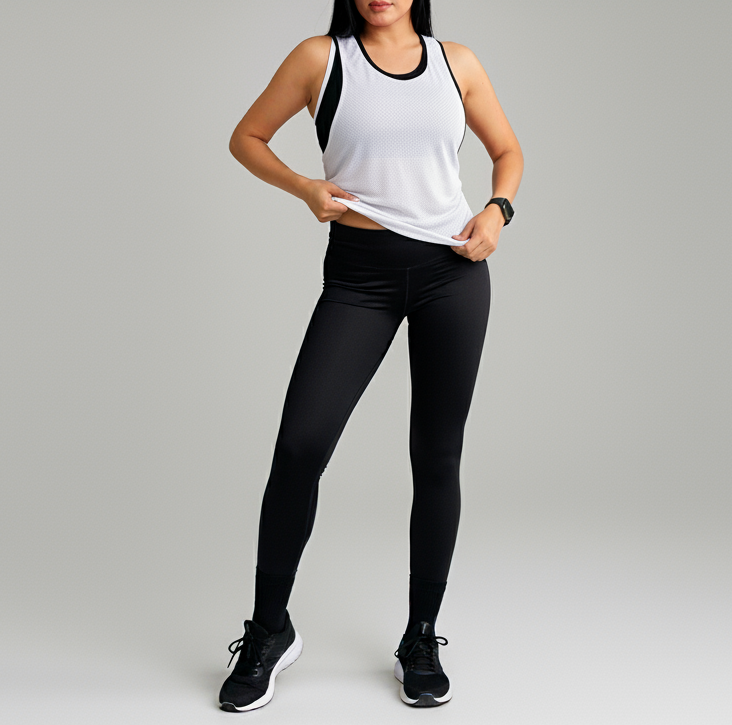 - Leggings de Alta Calidad: Confeccionados con un tejido elástico y suave que se amolda a tu cuerpo, ofreciéndote total libertad de movimiento y una sensación de segunda piel. Su diseño asegura que todo se mantenga en su lugar, ya sea que estés corriendo, levantando pesas o en una clase de yoga.